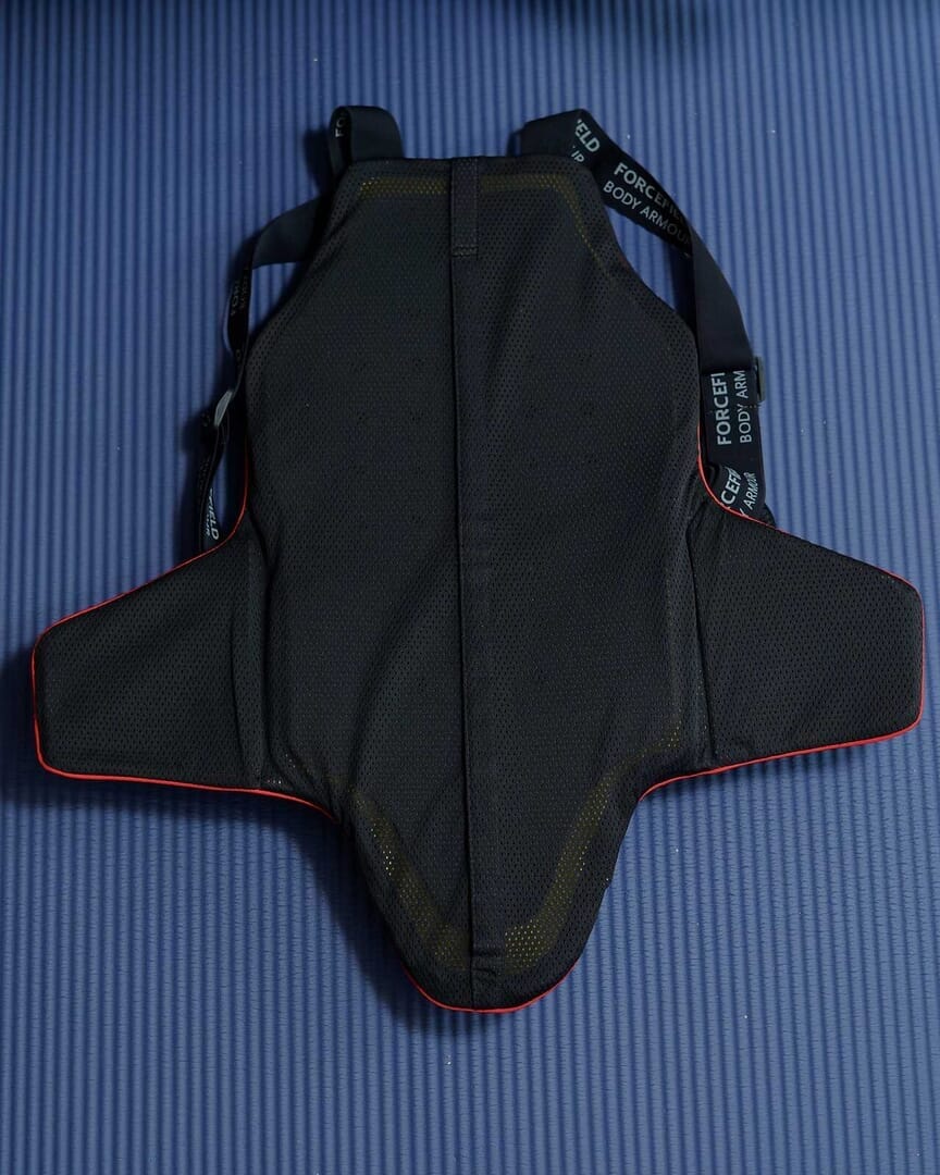 ちなみに購入にあたって一番不安だったのが厚みですが(レーシングスーツが着れないと本末転倒)、TaichiもForceFieldもだいたい3~4cmでほぼ同じでした。装着感もこれまでと変わらずで問題ありませんでした。レーシングスーツを着るときに持ち上がりかけるのは変わらないですね。