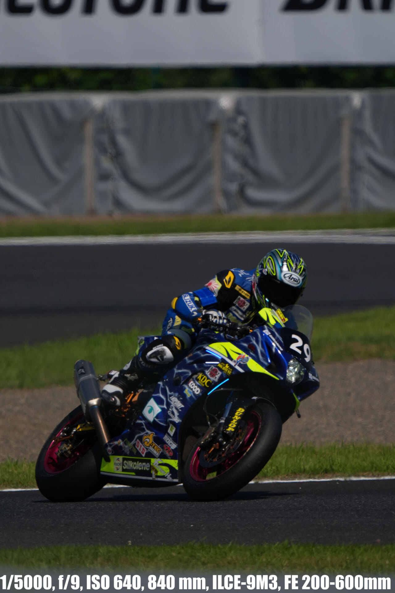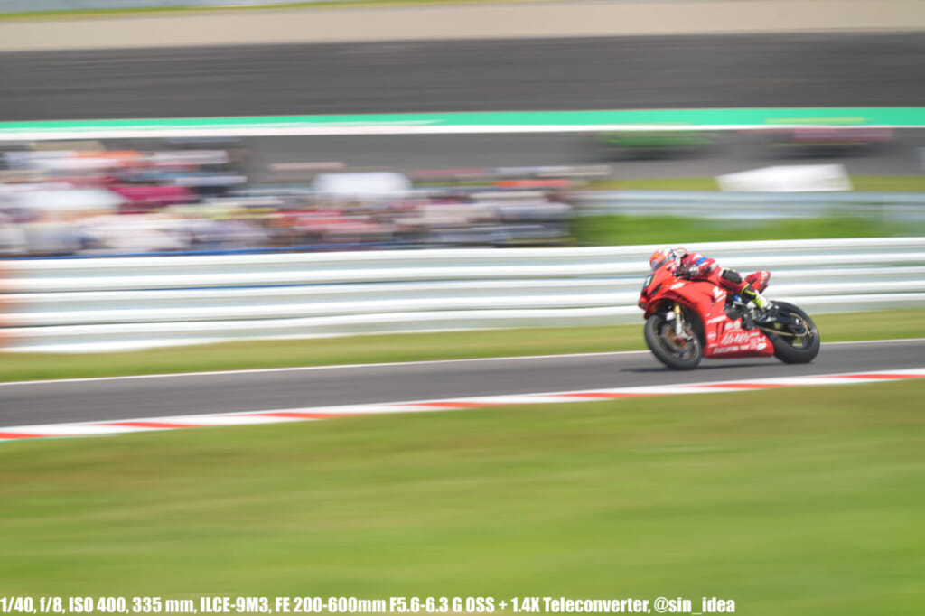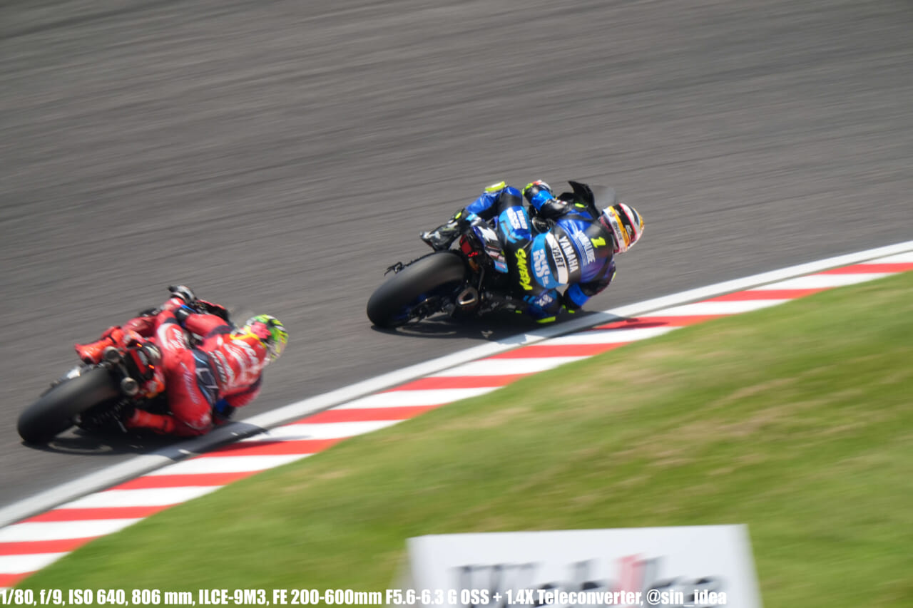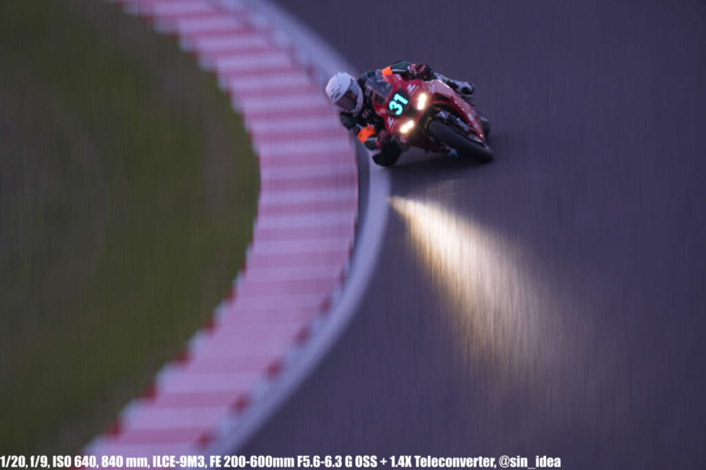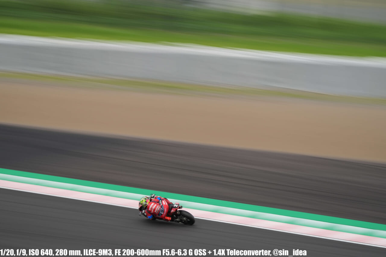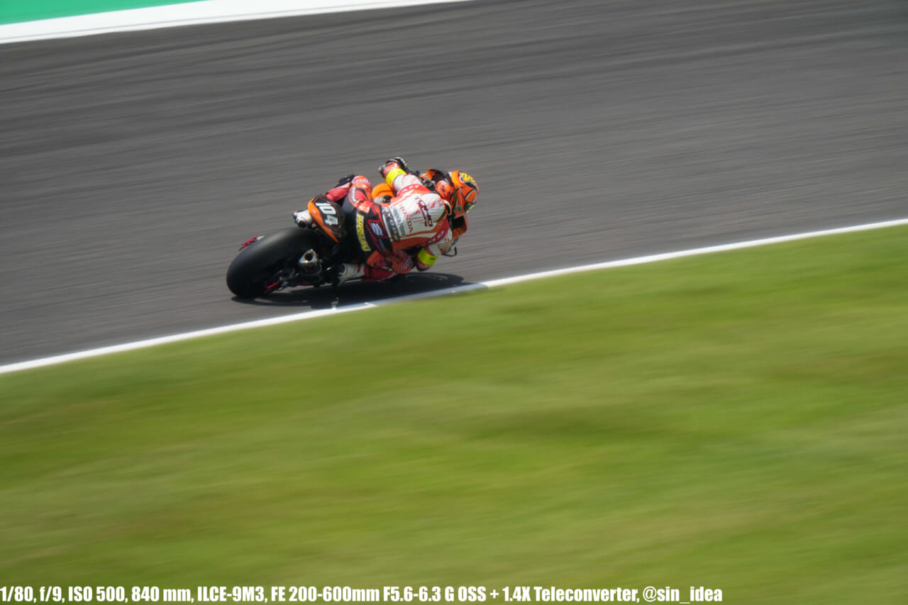 α9iii、さすがに良いですね。TOP10トライアルみたいなときは連射数増やして歩留まりを増やす試みもできますし、二輪シケイン→200R→スプーンの高速コーナーも連写で撮影を試みたりできて、これはこれで楽しいです。普段はマジで10連写くらいで充分なんですけど……。グローバルシャッターの恩恵は感じられませんでした。