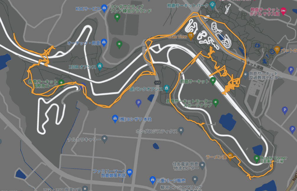 トラックログはこんな感じです。Ninja予選+8耐公式予選を撮影していたら見事に体力切れになって、ホンダのミュージアムで涼んでいました。とにかく暑い。GROMの予選はスルーです。