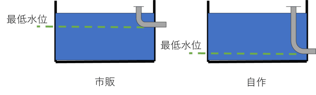 問題は排水の位置で、これを底部付近に持っていくことでリセットが容易になります。