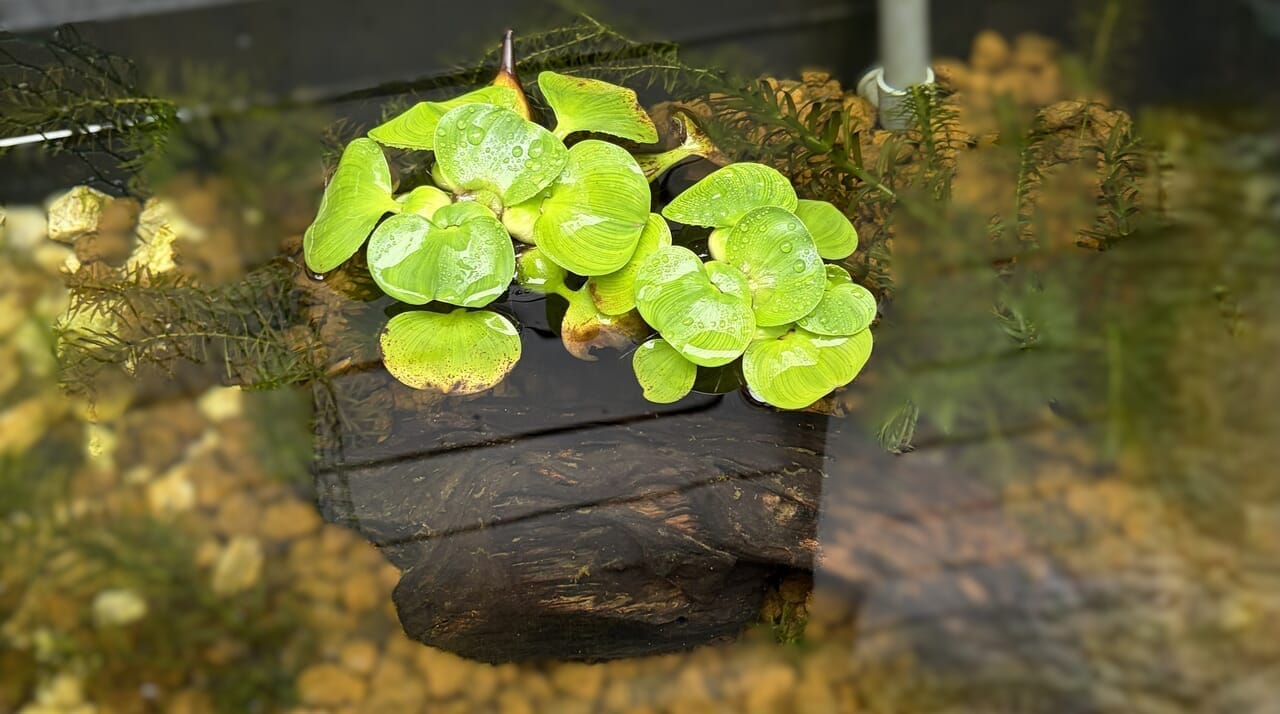 そして先日、ビオトープの中で稚魚(生後数日以内?)を発見しました。ホテイソウとかも全部ビオトープ内に戻したので、たぶんその根っこに産み付けられた卵から孵ったのだと思います。しかし天敵(親、エビ、外の虫、ろ過リフトの水流、溢水防止のパイプ)だらけのビオトープ内で成長できるのかは未知数です(1日しか発見できておらず、生死不明)。じゃあネットにうつせよという気もするのですが、これまでの実績でも隔離ネットもそんなに成績が良くないです。それなら屋内飼育になるかと思いますが、屋内は悪ガキという天敵がいます、というか屋内で問題なさそうならビオトープなんかやってないです。